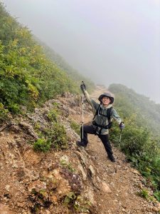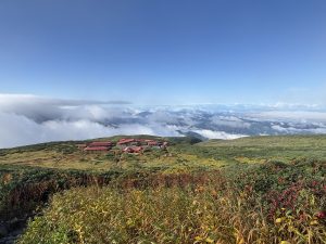 一泊二日で、まずは白山室堂に向けて標高差1200m 、6kmの道のりを7時間かけて登りました。初心者コースといえど、やはり上り坂はかなりつらい。時折雲の切れ間から見える眺望に、大自然の雄大さを感じ、疲れた心が癒されました!